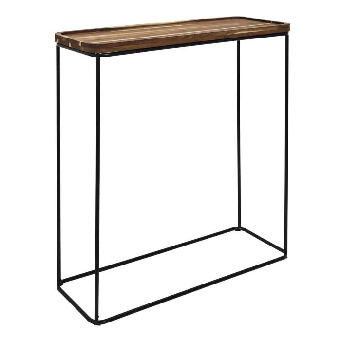 Informations Techniques : Dimensions : L. 80 x l. 30 x H. 82 cm Matières : 65% Bois (Acacia) & 35% Métal Spécificités : Tendance & Élégante Console rectangulaire À monter soi-même Poids : 4 kg Couleur : Marron & Noir