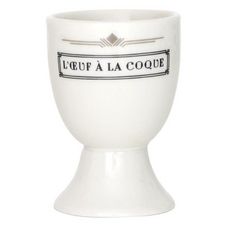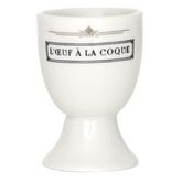 Informations Techniques : Dimensions : D. 5 x H. 7 cm Matière : Porcelaine Spécificités : Pratique & Utile Coquetier design Avec inscription Forme ronde Poids : 0,08 kg Couleur : Blanc & Noir