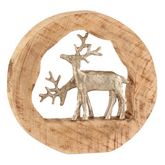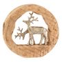 Informations Techniques : Dimensions : L. 30 x l. 6 x H. 28,5 cm Matières : Bois (Manguier) & Aluminium Spécificités : Tendance & Moderne Couple de Rennes Structure en Bois de Manguier Figurines en Aluminium Poids : 1,595 kg Couleur : Naturel & Argent
