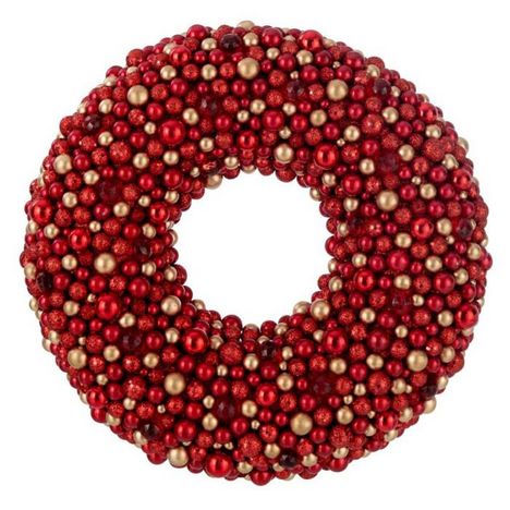 Informations Techniques : Dimensions : L. 50 x l. 6 x H. 50 cm Matière : 100% Plastique Spécificités : Déco & Festive Couronne à accrocher Avec boules Forme ronde Poids : 0,98 kg Couleur : Rouge & Or