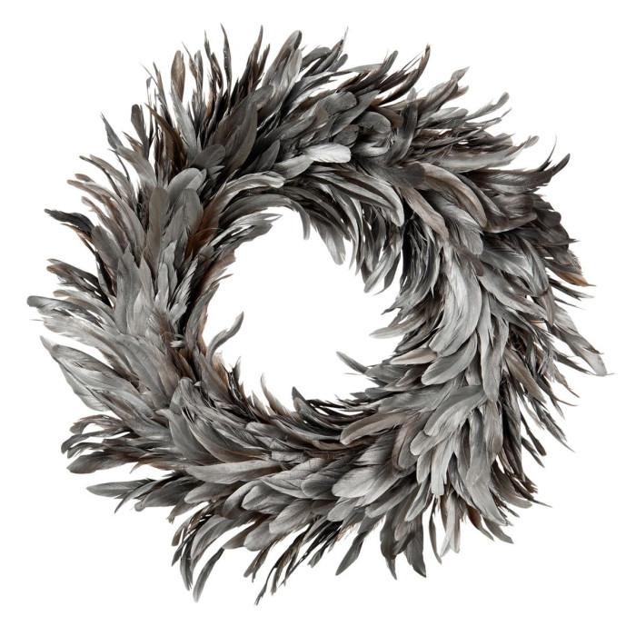 Informations Techniques : Dimensions : L. 55 x l. 55 x H. 8 cm Matière : Plumes Spécificités : Original & Design Couronne Déco Forme Ronde Design Plumes Poids : 0,09 kg Couleur : Argent