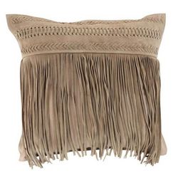 Coussin à Franges en Cuir India 45cm Gris Clair