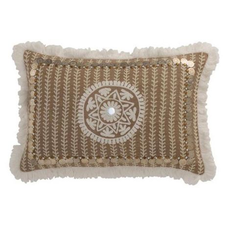Informations Techniques : Dimensions : L. 55 x l. 33,5 cm Matière : Textile Spécificités : Tendance & Moderne Coussin déco Forme Rectangulaire A Franges A Motifs Poids : 0,82 kg Couleur : Naturel