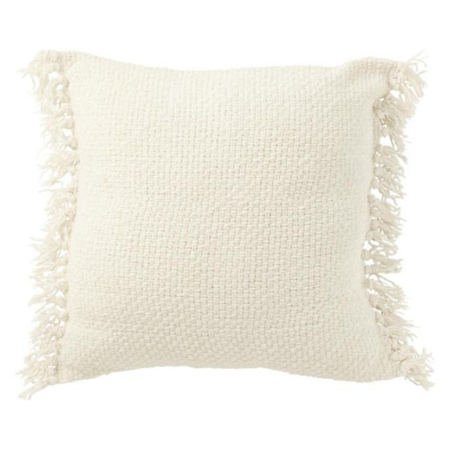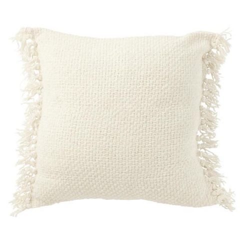 Informations Techniques : Dimensions : L. 45 x l. 45 x H. 12 cm Matières : 50% Viscose & 50% Coton Spécificités : Pratique & Tendance Coussin déco Avec franges Nettoyage localisé des taches uniquement Forme carrée Poids : 0,73 kg Couleur : Blanc