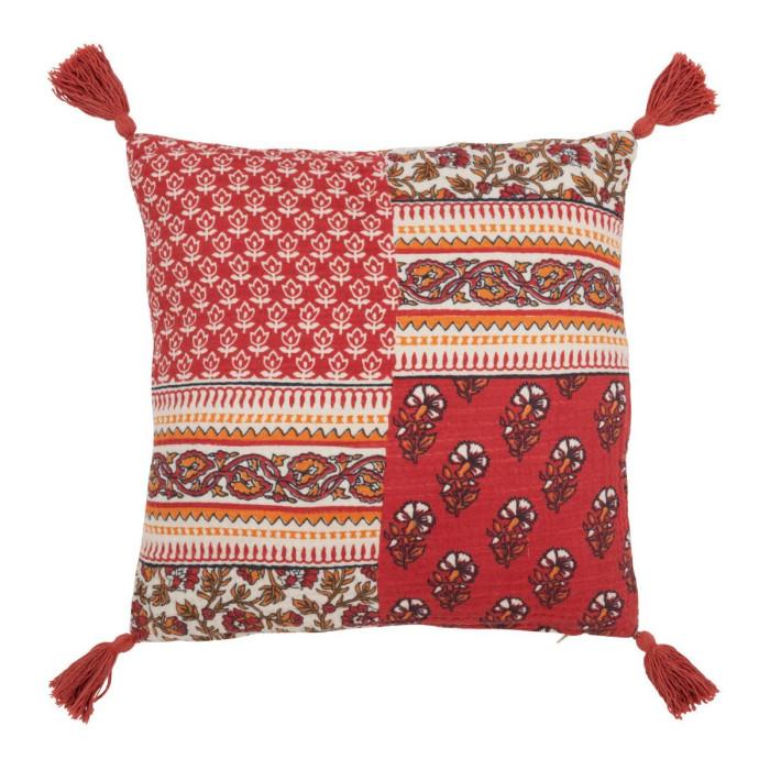 Coussin à Pompons Fleurs Mexican 45x45cm Rouge