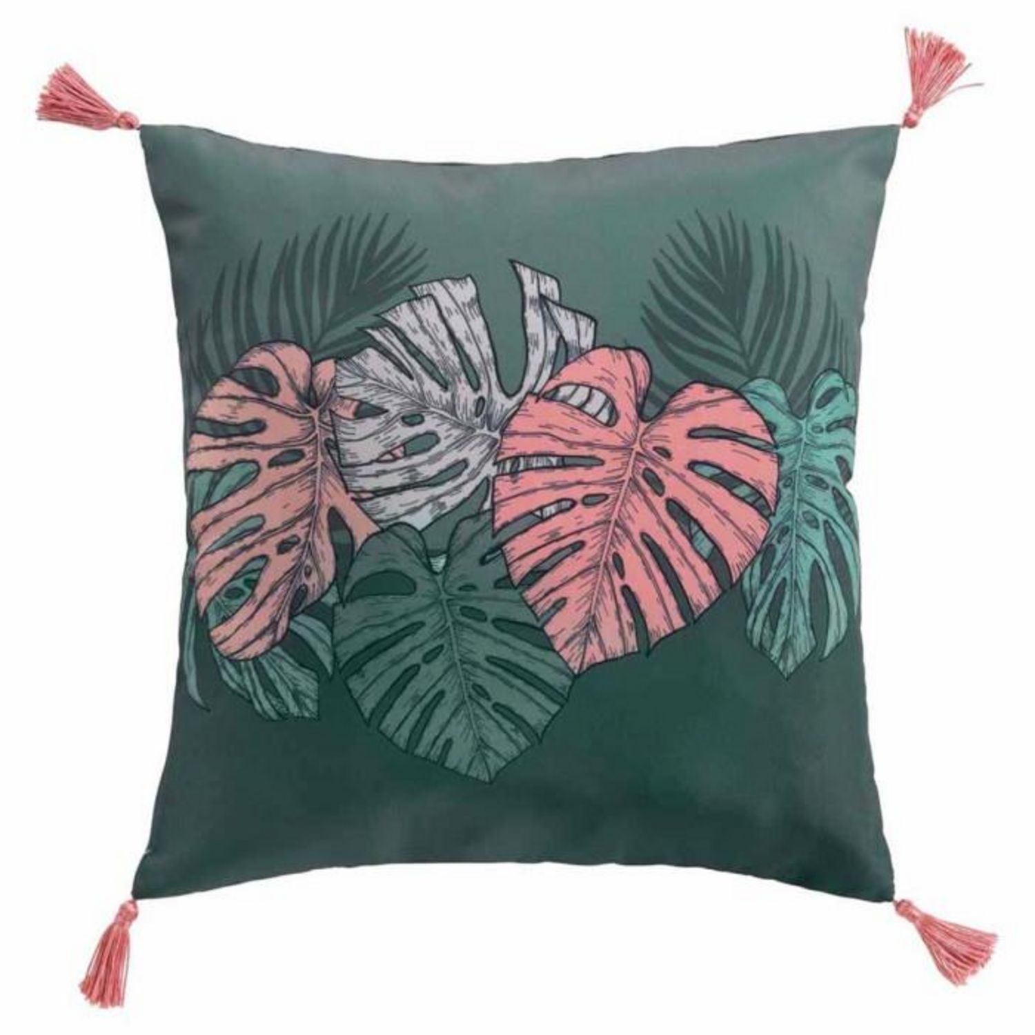 Informations Techniques : Dimensions : L. 40 x l. 40 cm Matière : Polyester Spécificités : Coloré & Tendance Coussin déco Forme Carrée Avec Pompons A Motifs Couleur : Vert