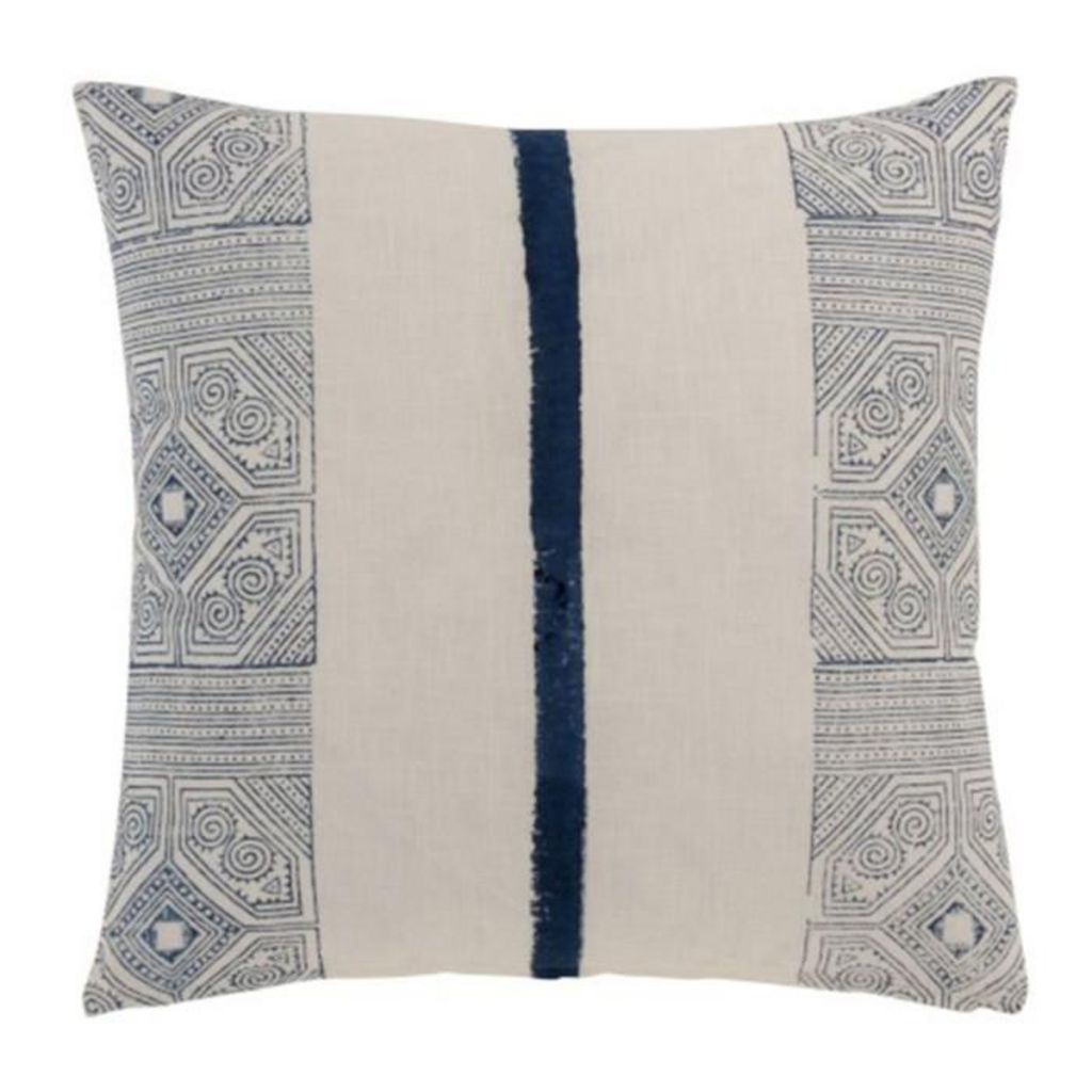 Coussin Carré Coton Aztèque 50x50cm Bleu & Blanc