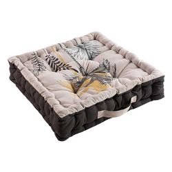 Informations Techniques : Dimensions : L. 45 x l. 45 x H. 10 cm Matière : Coton Spécificités : Déco & Pratique Coussin de sol carré Imprimé exotique Poignée de transport Poids : 1,4 kg Couleur : Beige