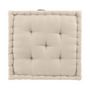Informations Techniques : Dimensions : L. 50 x l. 50 x H. 10 cm Matières : 60% Coton & 40% Polyester Spécificités : Pratique & Confortable Coussin de sol Polyester recyclé Forme carrée Entretien : Pas de lavage Pas de séchage en machine Pas de repassage Poids : 2,67 kg Couleur : Lin