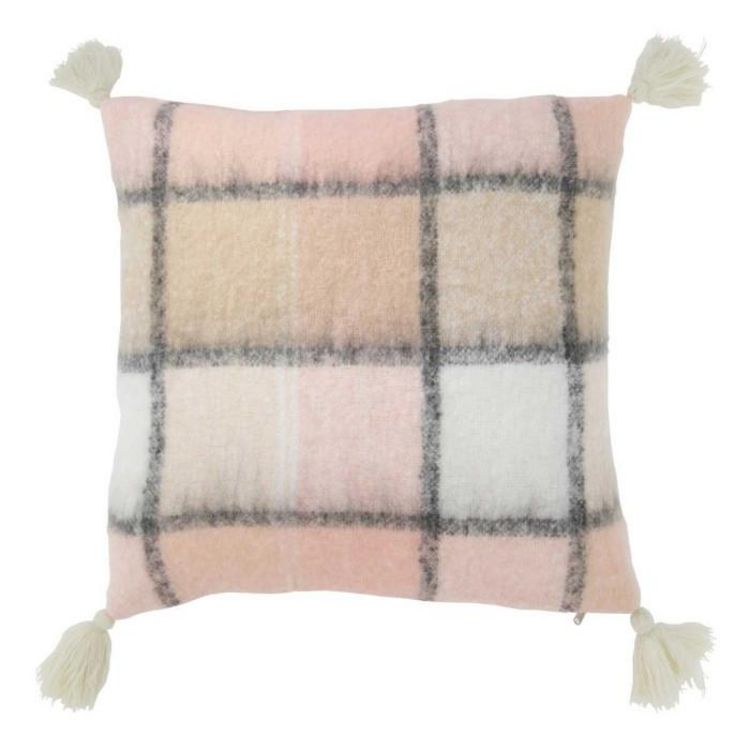 Informations Techniques : Dimensions : L. 45 x l. 45 x H. 5 cm Matières : 80% Acrylique & 20% Polyester Spécificités : Déco & Doux Coussin déhoussable Imprimé carreaux Avec pompons Forme carrée Poids : 0,69 kg Couleur : Beige & Rose