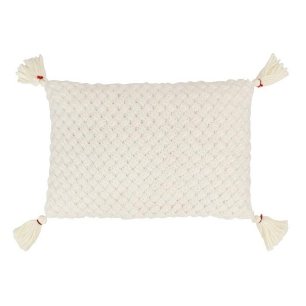 Coussin Déco à Franges Crochet 40x60cm Blanc