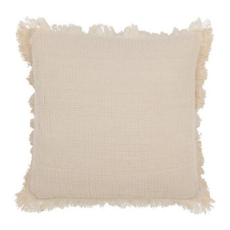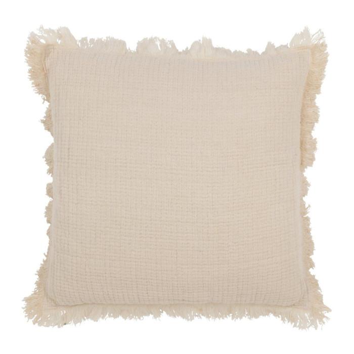 Coussin Déco à Franges Mousseline 45x45cm Beige Clair