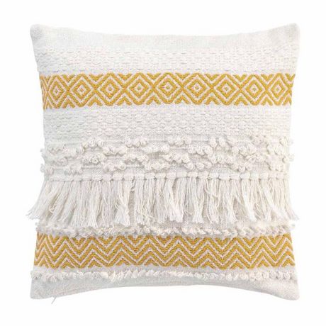 Informations Techniques : Dimensions : L. 40 x l. 40 cm Matières : Coton & Polyester Spécificités : Tendance & Moderne Coussin Déco Forme Carrée Avec Franges Couleur : Jaune
