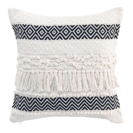 Informations Techniques : Dimensions : L. 40 x l. 40 cm Matières : Coton & Polyester Spécificités : Tendance & Moderne Coussin Déco Forme Carrée Avec Franges Couleur : Noir