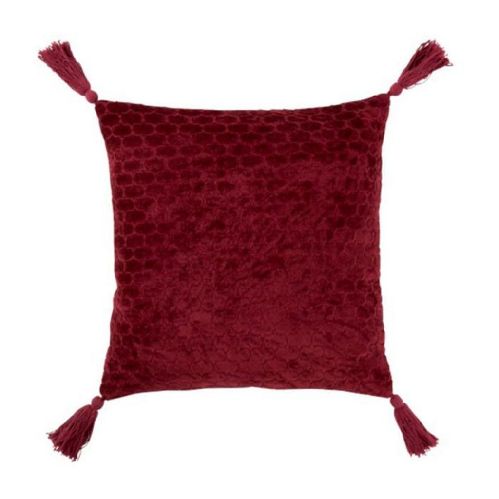Informations Techniques : Dimensions : L. 45 x l. 45 cm Matières : 90% Coton & 10% Polyester Spécificités : Tendance & Original Coussin déco Forme Carrée A Motifs & Pompons Facile d'entretien & d'utilisation Poids : 0,7 kg Couleur : Bordeaux