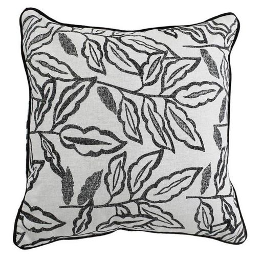 Informations Techniques : Dimensions : L. 40 x l. 40 cm Matières : 80% Coton recyclé & 20% Polyester Garnissage : 100% Polyester Spécificités : Pratique & Déco Coussin déco à motifs Déhoussable avec zip Tissu en coton recyclé chambray Imprimé feuilles texturées Avec passepoil Couleur : Écru & Noir
