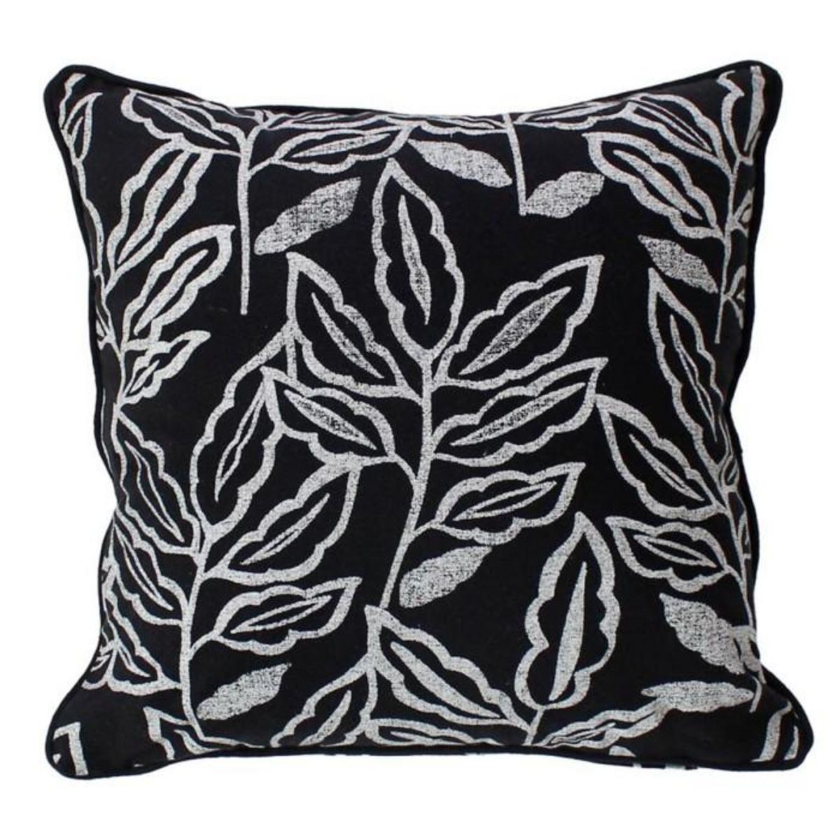 Informations Techniques : Dimensions : L. 40 x l. 40 cm Matières : 80% Coton recyclé & 20% Polyester Garnissage : 100% Polyester Spécificités : Pratique & Déco Coussin déco à motifs Déhoussable avec zip Tissu en coton recyclé chambray Imprimé feuilles texturées Avec passepoil Couleur : Noir & Blanc