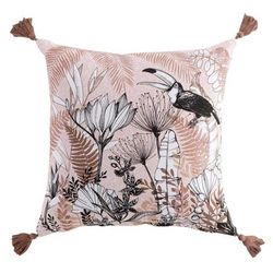 Informations Techniques : Dimensions : L. 45 x l. 45 cm Matières : Coton & Polyester Spécificités : Tendance & Moderne Coussin Déco Forme Carrée A Pompons A Motifs Poids : 0,505 kg Couleur : Rose