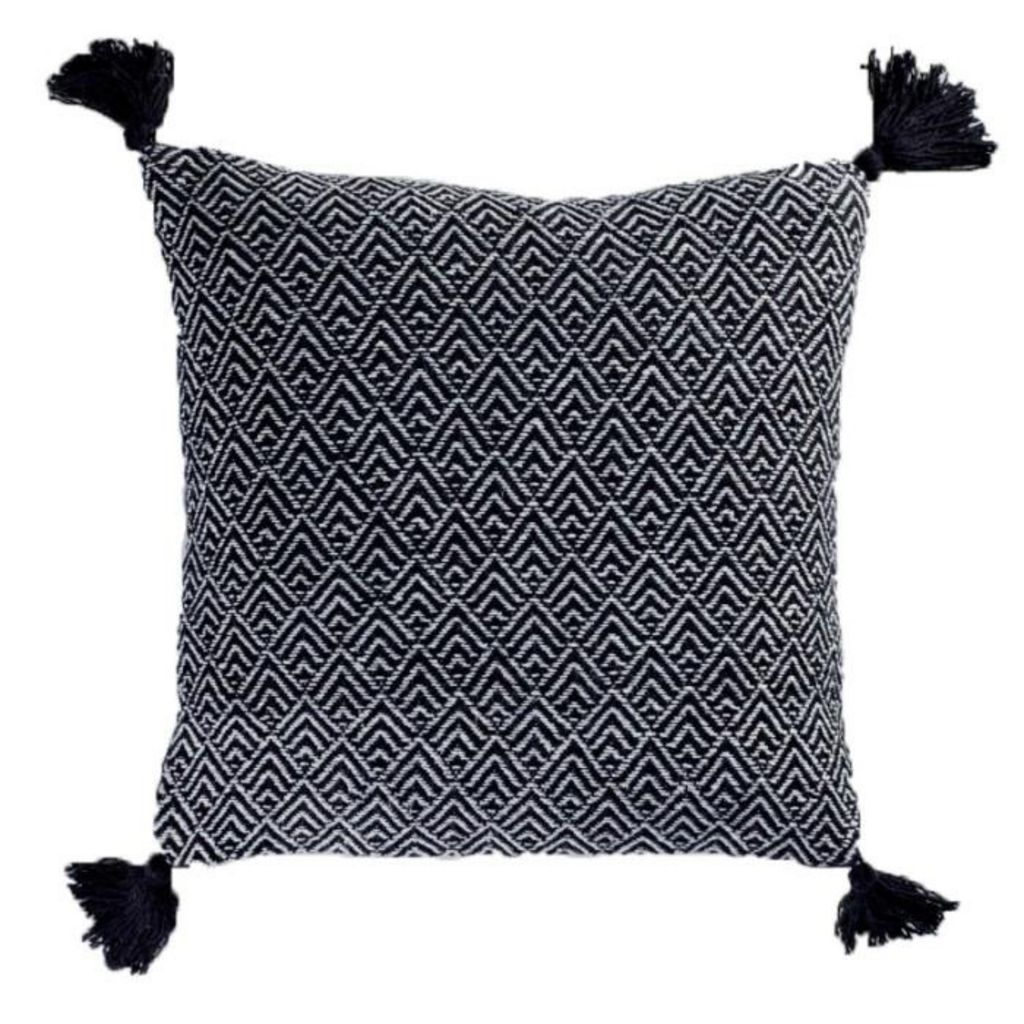 Coussin Déco à Pompons Delios 40x40cm Noir