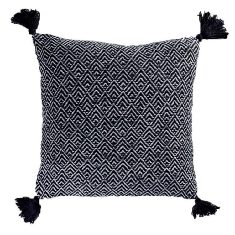Informations Techniques : Dimensions : L. 40 x l. 40 cm Matières : Enveloppe : Coton Intérieur : Polyester Spécificités : Tendance & Déco Fermeture à Zip Déhoussable Motifs Géométriques Lavage à 30° Poids : 0,500 kg Couleur : Noir