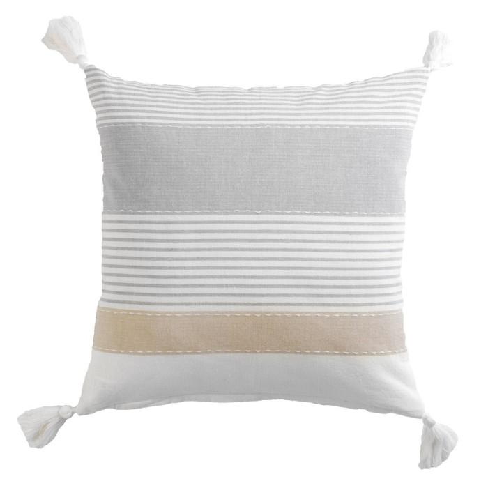 Coussin Déco à Pompons Iliade 40x40cm Gris