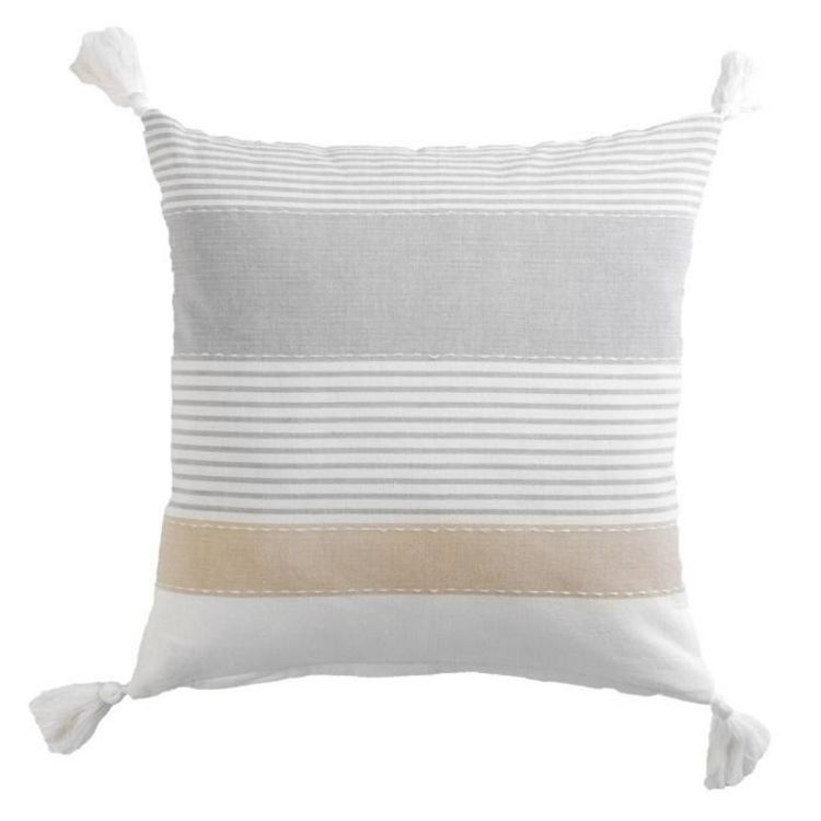 Informations Techniques : Dimensions : L. 40 x l. 40 cm Matière : Coton Spécificités : Élégant & Design Coussin déhoussable par fermeture éclair Finition: À pompons Couleur : Gris
