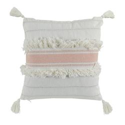 Informations Techniques : Dimensions : L. 40 x l. 40 cm Matières : Coton & Polyester Spécificités : Tendance & Moderne Coussin Déco Forme Carrée A Pompons Couleur : Rose