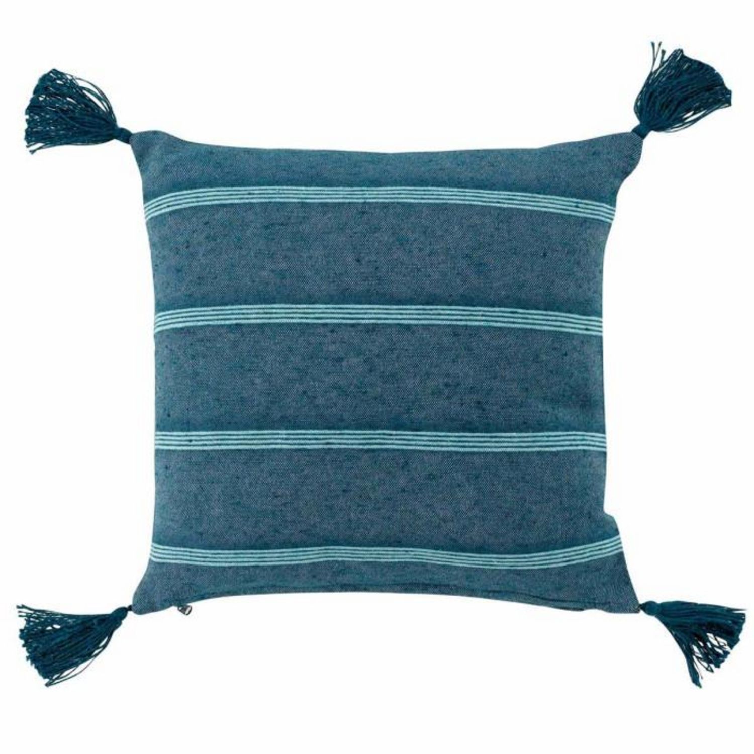 Coussin Déco à Pompons Jakady 40x40cm Bleu