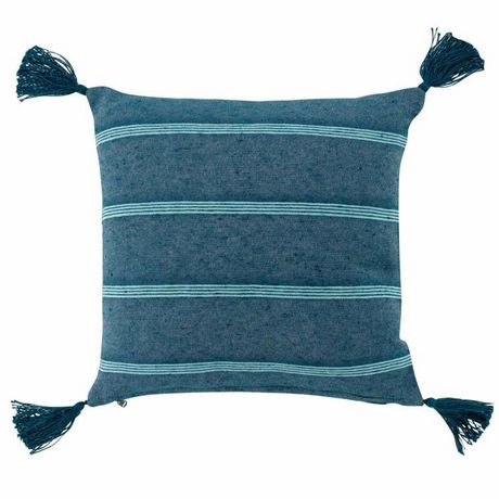 Informations Techniques : Dimensions : L. 40 x l. 40 cm Matières : Coton & Polyester Spécificités : Tendance & Moderne Coussin Déco Forme Carrée A Motifs & Pompons Design Jacquard Poids : 0,402 kg Couleur : Bleu