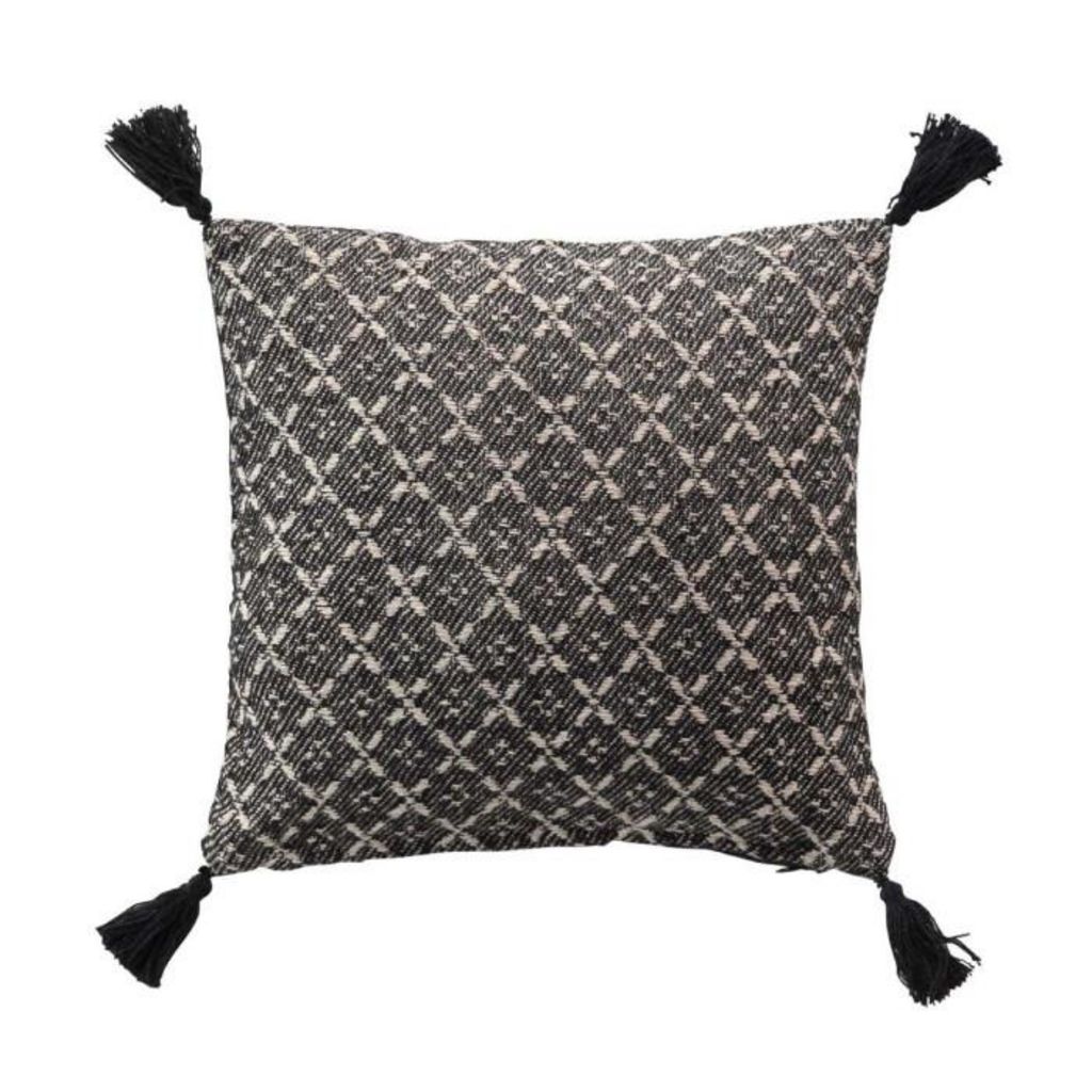Coussin Déco à Pompons Janna 40x40cm Noir