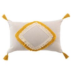 Coussin Déco à Pompons Malory 30x50cm Jaune