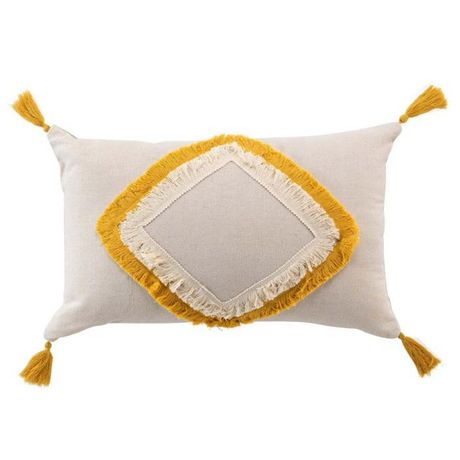 Informations Techniques : Dimensions : L. 50 x l. 30 cm Matières : Coton, Polyester & Viscose Spécificités : Pratique & Tendance Coussin déhoussable Frange fantaisie déco Label Oeko-Tex Forme rectangulaire Entretien : Lavage à la main Pas de séchage en machine Pas de repassage Poids : 0,36 kg Coul