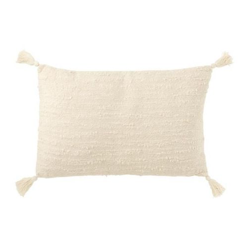 Informations Techniques : Dimensions : L. 60 x l. 40 x H. 12 cm Matière : 100% Coton Spécificités : Pratique & Tendance Coussin déco uni Avec 4 pompons Déhoussable Nettoyage localisé des taches uniquement Forme rectangulaire Poids : 0,87 kg Couleur : Crème