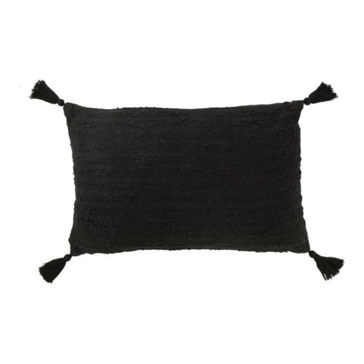Informations Techniques : Dimensions : L. 60 x l. 40 x H. 12 cm Matière : 100% Coton Spécificités : Pratique & Tendance Coussin déco uni Avec 4 pompons Déhoussable Nettoyage localisé des taches uniquement Forme rectangulaire Poids : 0,82 kg Couleur : Noir