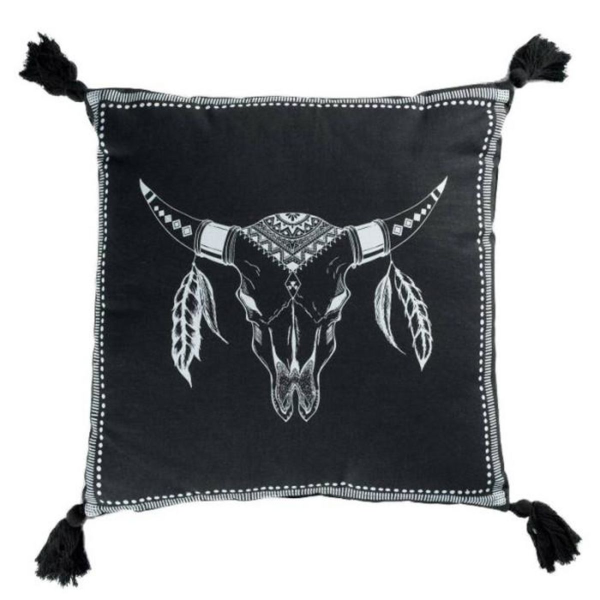 Coussin Déco à Pompons Mohicana 40x40cm Noir