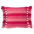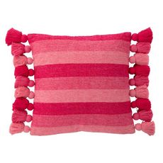Informations Techniques : Dimensions : L. 50 x l. 50 x H. 15 cm Matière : 70% Coton & 30% Viscose Spécificités : Pratique & Coloré Coussin carré Avec pompons Imprimé à rayures Déhoussable Poids : 1,49 kg Couleur : Rose