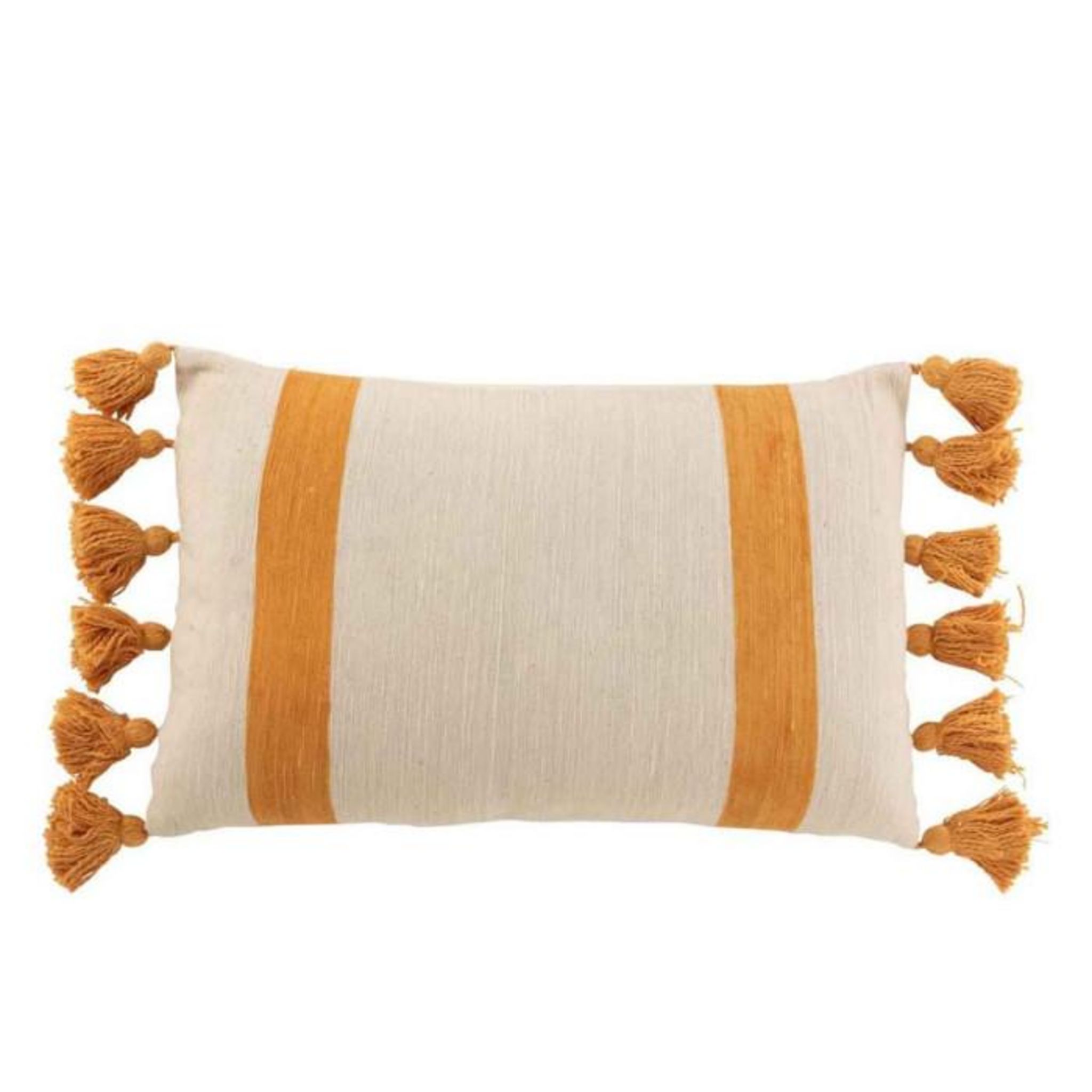 Coussin Déco à Pompons Rayures 40x60cm Ocre