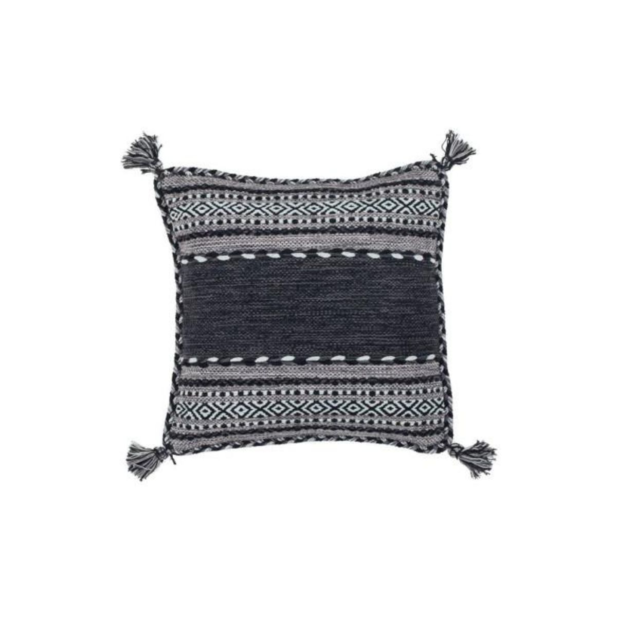 Informations Techniques : Dimensions : L. 45 x l. 45 cm Matières : Revêtement : 100% Coton Rembourrage : 100% Polyester Spécificités : Tendance & Moderne Coussin déco Forme Carrée Style Ethnique Tissé à la Main Facile d'Entretien & d'Utilisation Poids : 0,65 kg Couleur : Gris