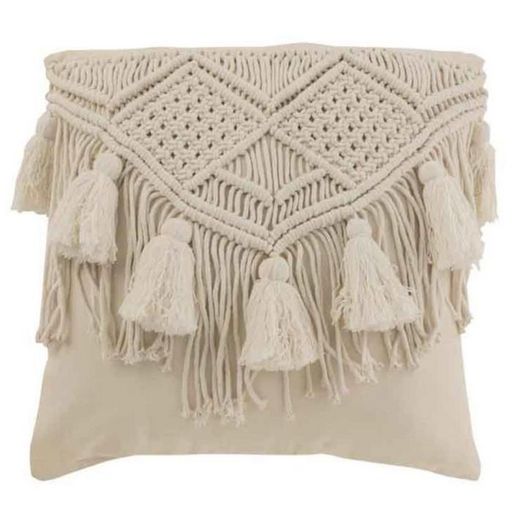 Coussin Déco avec Franges Cosy 45x45cm Ivoire