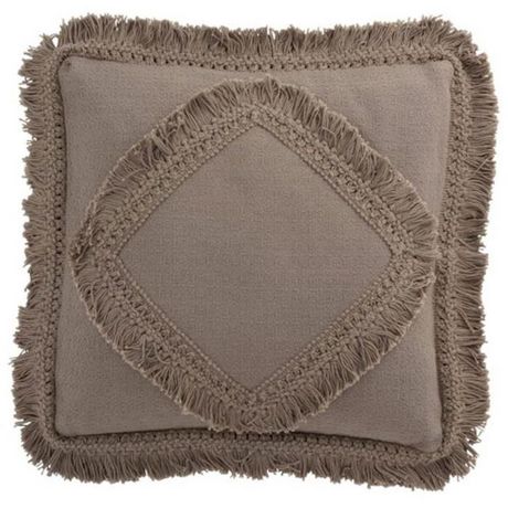 Informations Techniques : Dimensions : L. 45 x l. 45 cm Matière : Coton Spécificités : Tendance & Design Coussin déco A Franges Déhoussable Forme Carrée Poids : 0,8 kg Couleur : Taupe