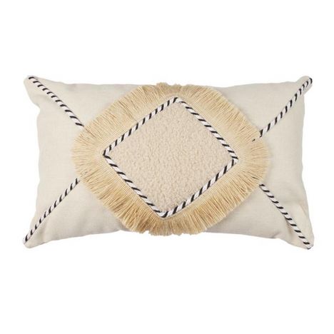 Informations Techniques : Dimensions : L. 50 x l. 30 x H. 13 cm Matières : Polyester, Coton & Viscose Spécificités : Déco & Utile Tissu bouclette Motif géométrique Déhoussable Forme rectangulaire Entretien : Lavage en machine à 30° Pas de séche-linge Repassage doux à 110° Poids : 0,34 kg Couleur : B
