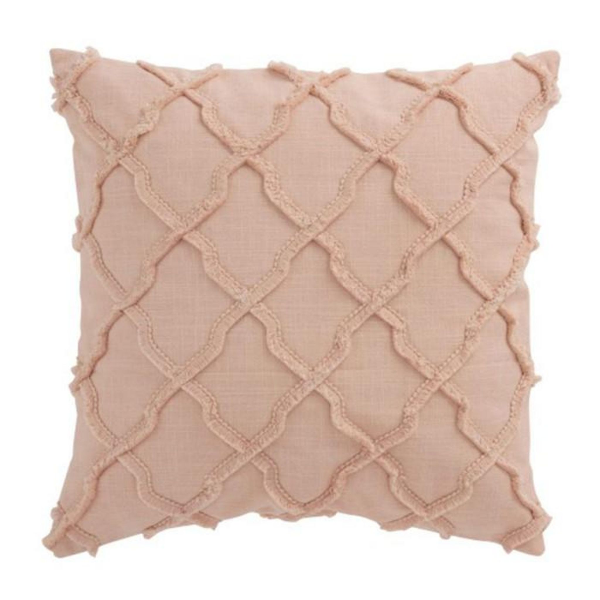 Informations Techniques : Dimensions : L. 43 x l. 43 x H. 5,5 cm Matière : Textile Spécificités : Confort & Original Forme Carrée Motif de Losanges Facile d'entretien & d'utilisation Poids : 0,7 kg Couleur : Rose