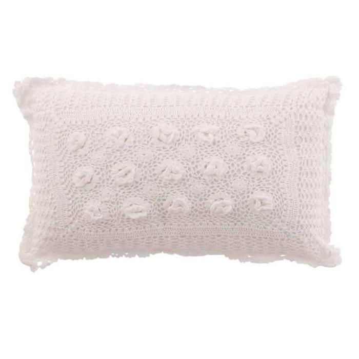 Informations Techniques : Dimensions : L. 50 x l. 30 cm Matière : Coton Spécificités : Pratique & Utile Coussin Déco Forme Rectangulaire Design Dentelle Housse Amovible Style Vintage & Rétro Densité du Coussin : 300 g/cm3 Lavage à la Main uniquement Poids : 0,4 kg Couleur : Blanc