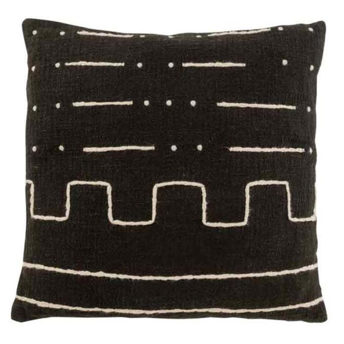 Informations Techniques : Dimensions : L. 45 x l. 45 x H. 1 cm Matière : Coton Spécificités : Tendance & Moderne Coussin Déco Forme Carrée Design Dessin Graphique Housse Amovible Densité du Coussin : 400 g/cm3 Poids : 0,55 kg Couleur : Noir