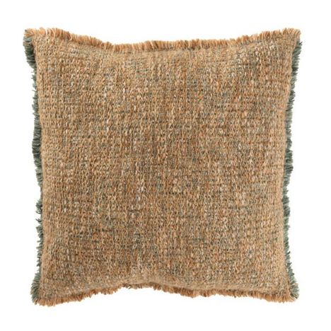 Coussin Déco Effiloché 45x45cm Marron & Vert