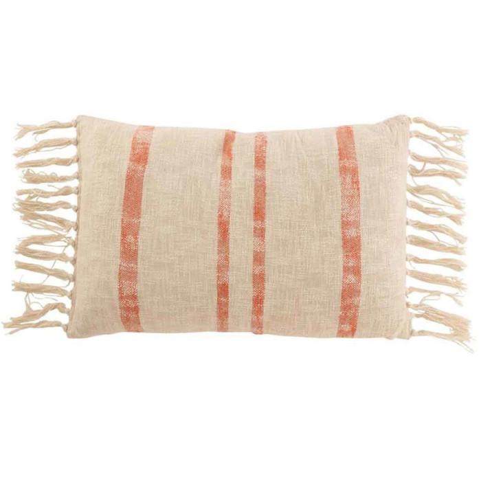 Informations Techniques : Dimensions : L. 40 x l. 60 x H. 10 cm Matière : Coton Spécificités : Tendance & Moderne Coussin Déco Forme Rectangulaire Housse Amovible Motif Rayures Lavage à la Main uniquement Poids : 0,67 kg Couleur : Beige & Orange