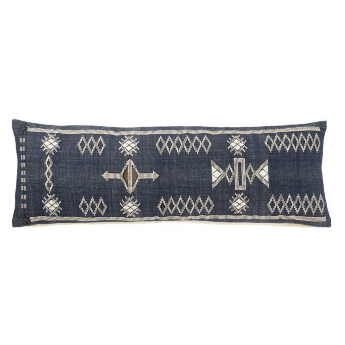 Informations Techniques : Dimensions : L. 100 x l. 35 x H. 15 cm Matière : 100% Coton Spécificités : Déco & Pratique Coussin rectangulaire Motifs ethniques Déhoussable Nettoyage des taches uniquement Poids : 1,45 kg Couleur : Bleu Foncé