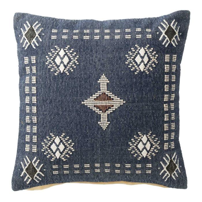 Informations Techniques : Dimensions : L. 45 x l. 45 x H. 15 cm Matière : 100% Coton Spécificités : Déco & Pratique Coussin carré Motifs ethniques Déhoussable Nettoyage des taches uniquement Poids : 0,75 kg Couleur : Bleu Foncé