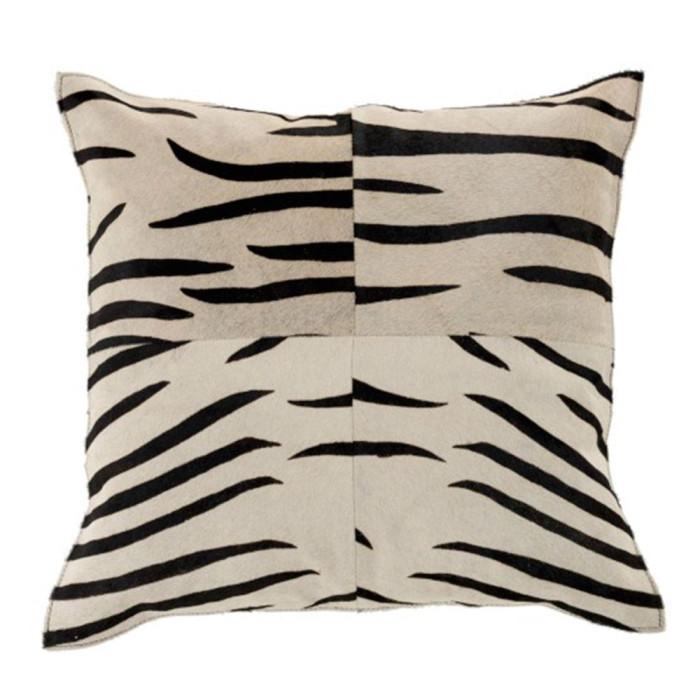 Coussin Déco en Cuir Zèbre 44x44cm Noir & Blanc