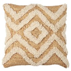 Coussin Déco en Jute Tufté 40x40cm Beige & Naturel